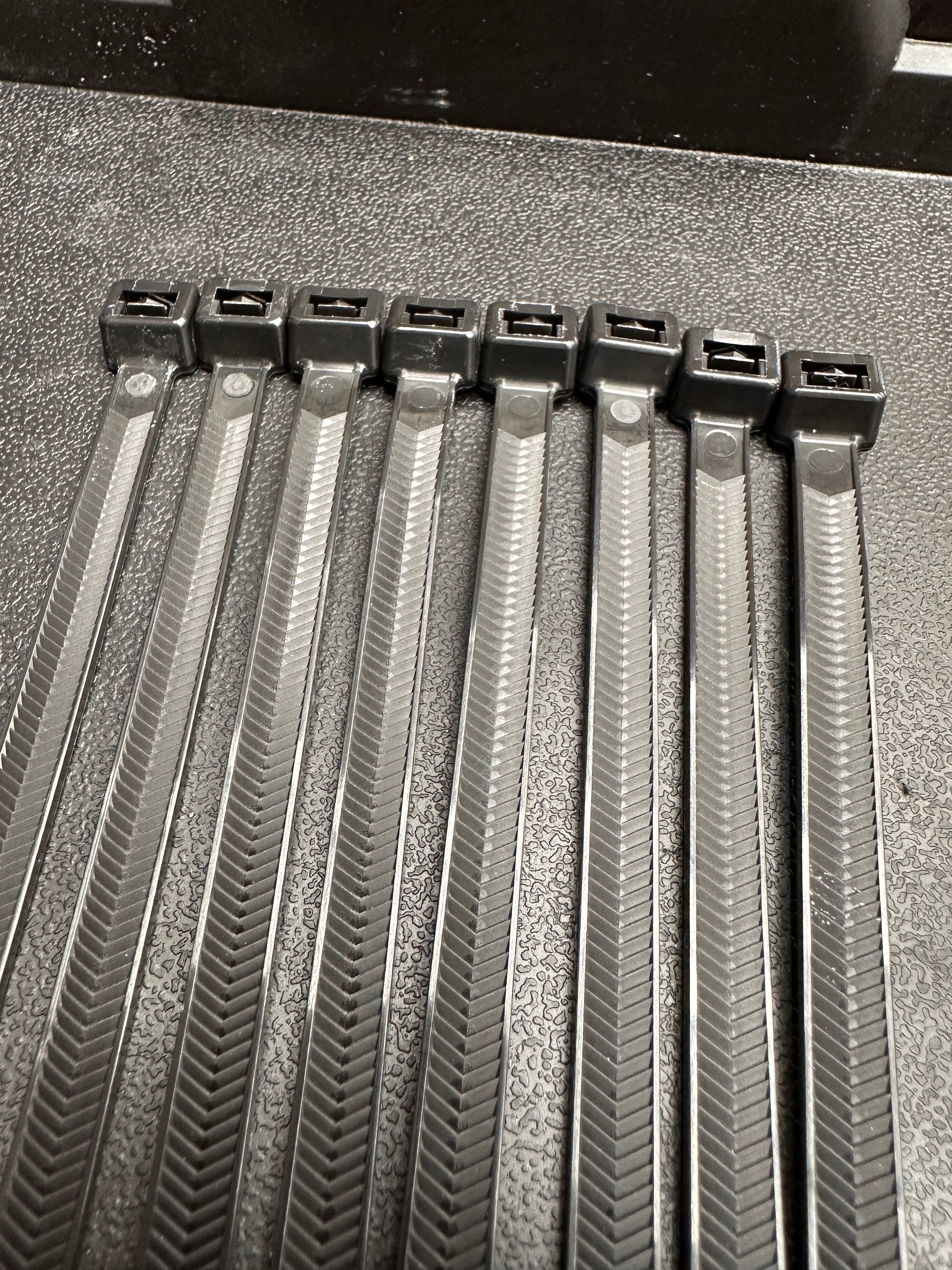 - 8 heavy duty nylon "V" shaped zipties with 200lbs of tensile strength, 1.5x stronger than regular zip ties